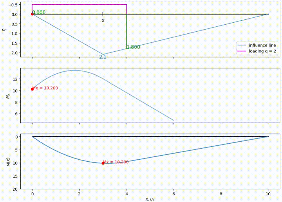 - nejúčinnější poloha částečného spojitého zatížení pro vyvození maximálního ohybového momentu v řezu x na prostém nosníku - gif, mkv